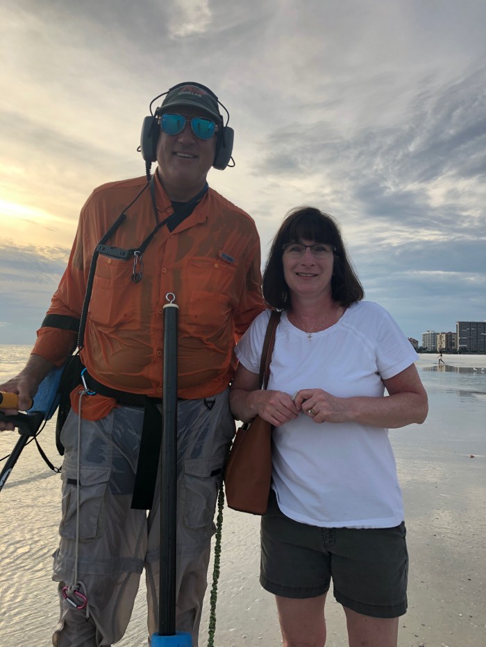 [June 7, 2019 – Marco Island, Florida] While vacationing with family and spending the day at the beach, Beth suddenly noticed that her two gold rings were missing as she was exiting the water. Neither ring had been off her finger in over 17 years, one being her wedding ring and the other given by her now deceased grandmother. As the family frantically searched their gear, clothing and beach bags, an adjacent tourist searched for help on his smart phone. Well, the rest is now history – the smiles and hugs of joy and thanksgiving say it all – “prayers answered and thank God” for what was once lost has been found.